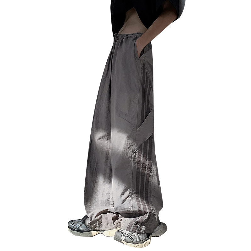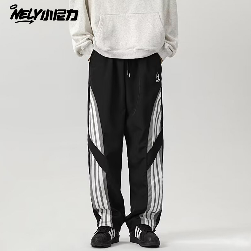 小尼力美式高街拼接条纹休闲裤子男宽松休闲学生青年直筒冲锋长裤
