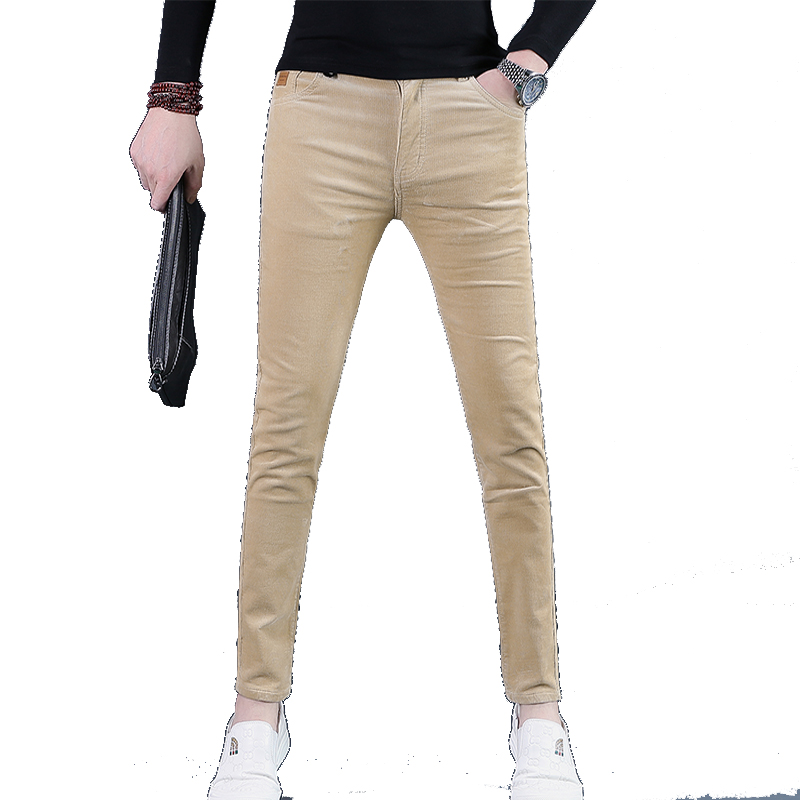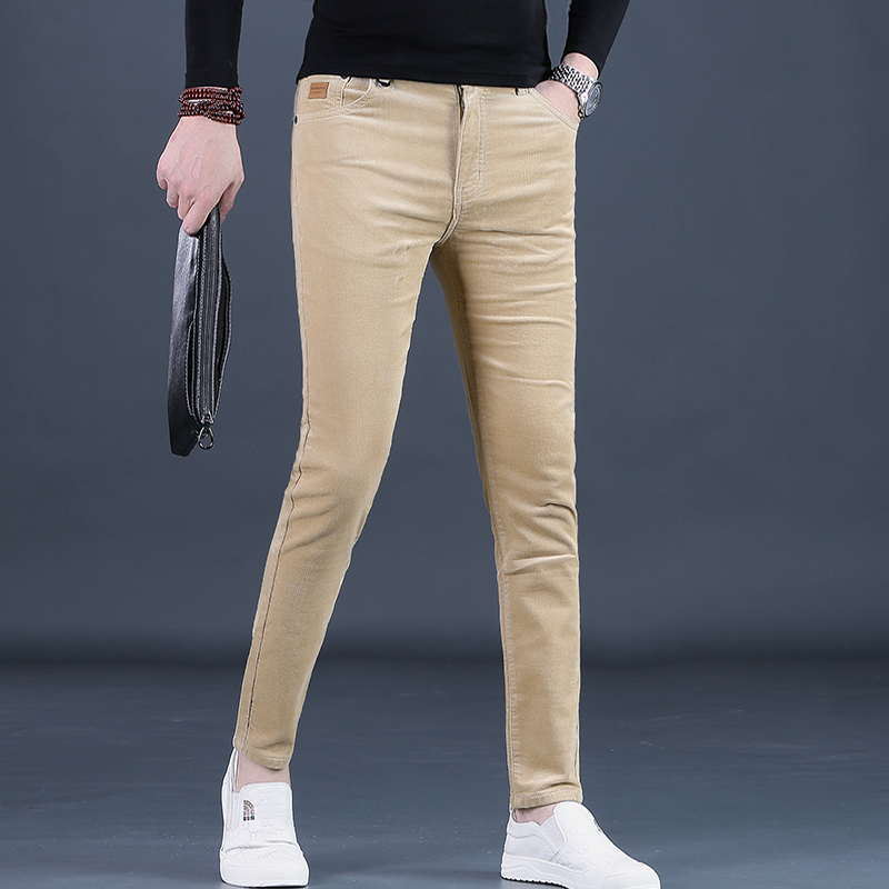 裤子男25秋冬新款灯芯绒男士休闲裤潮流修身小脚长裤厚卡其色男裤