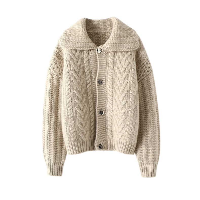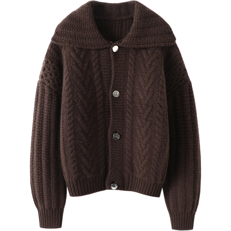 爱了爱了!大翻领粗棒针绞花羊绒衫女纯羊绒毛衣针织开衫外套冬厚