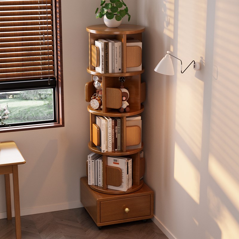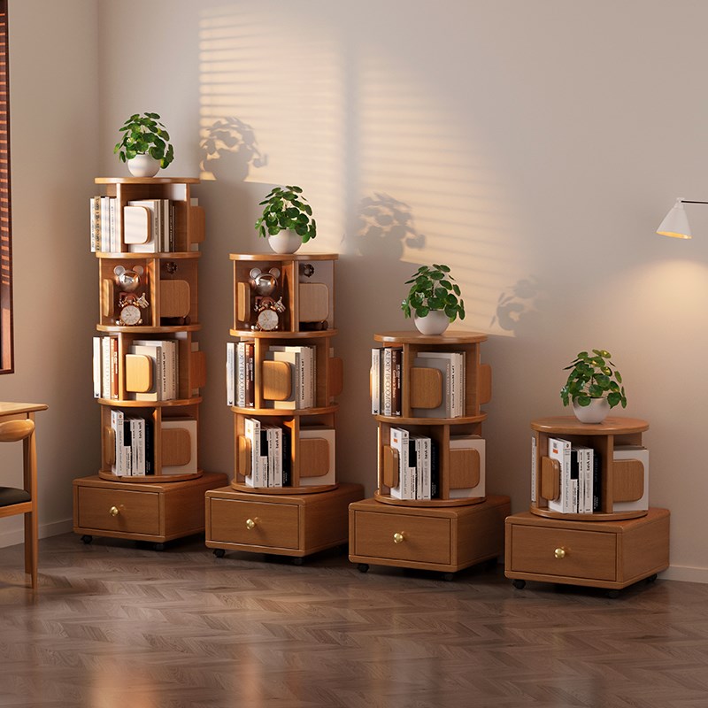 实木旋转小书架移动带轮卧室儿童书柜简约床头柜床边收纳置物架子