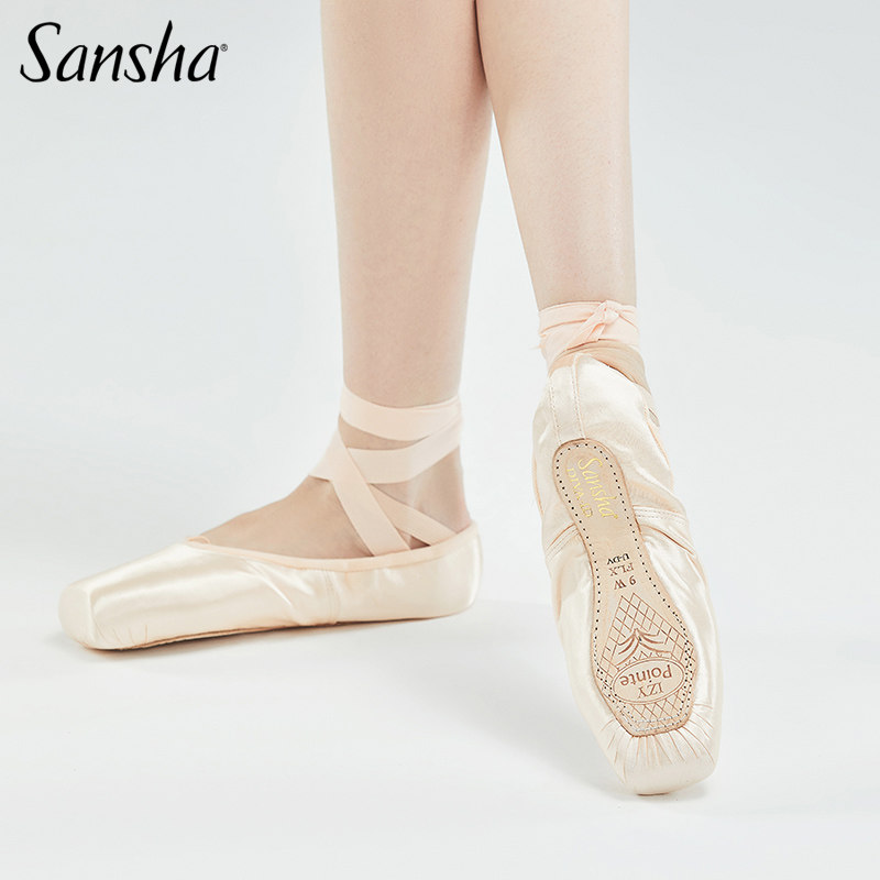 正品Sansha三沙芭蕾舞足尖鞋初学者立足尖舞鞋缎面舞蹈练功硬鞋ID