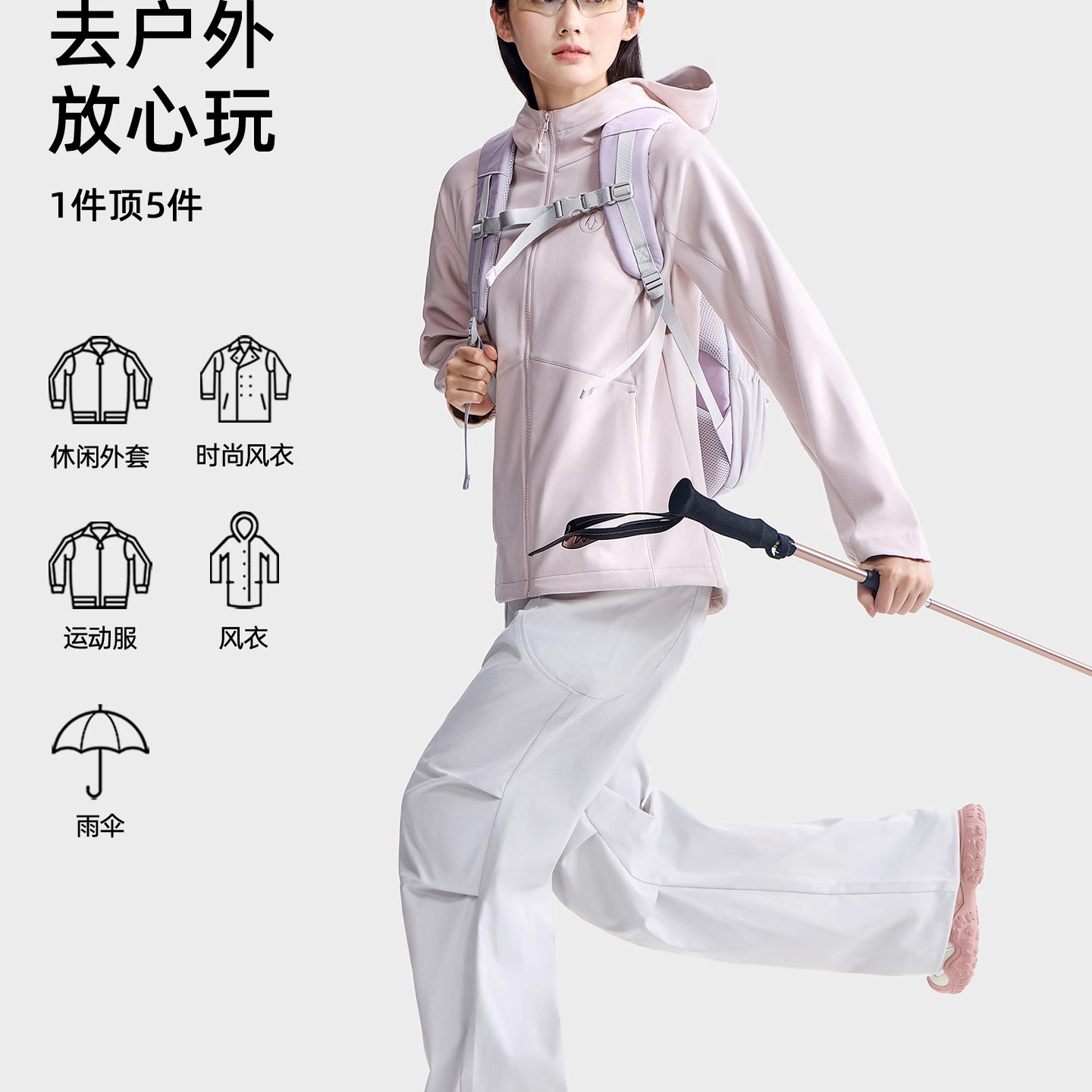 骆驼企鹅系列粉色软壳衣女款加绒抗静电秋季新款户外防风运动外套