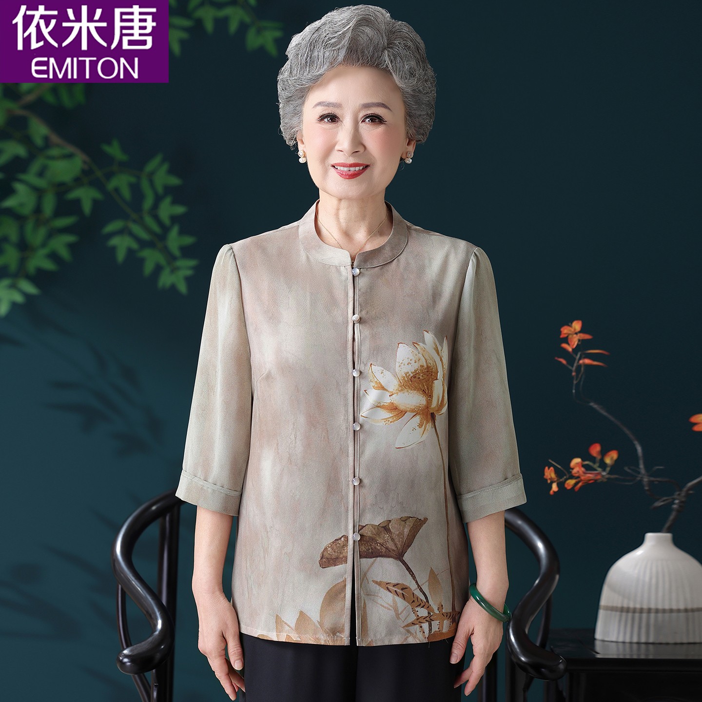 中老年人夏装女短袖奶奶衬衫妈妈夏季薄款雪纺上衣老太太老人衣服