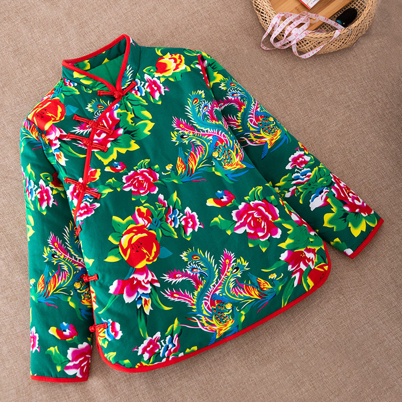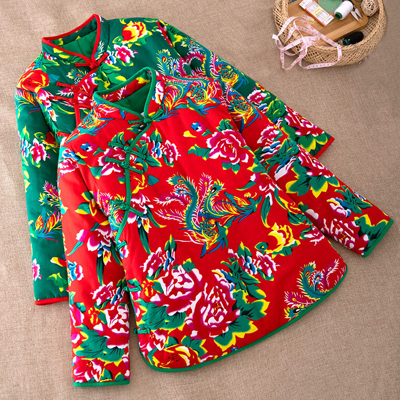 女士东北大花布盘扣棉袄