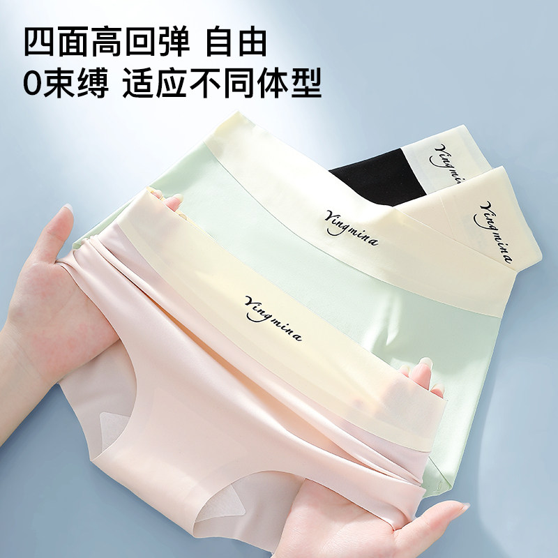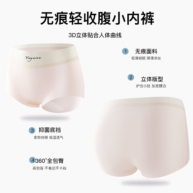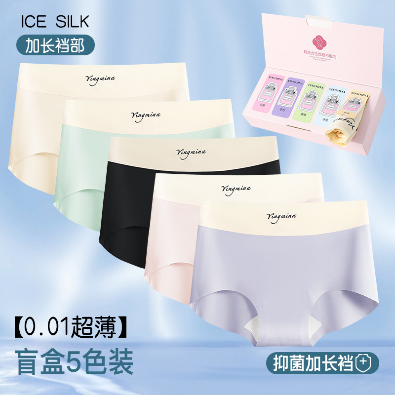 NOYCE五条礼盒装无痕冰丝平角裤中腰女夏季抗菌加长裆贴身内裤