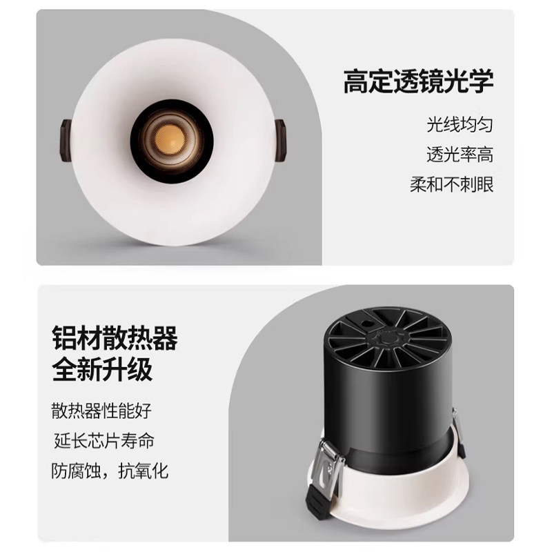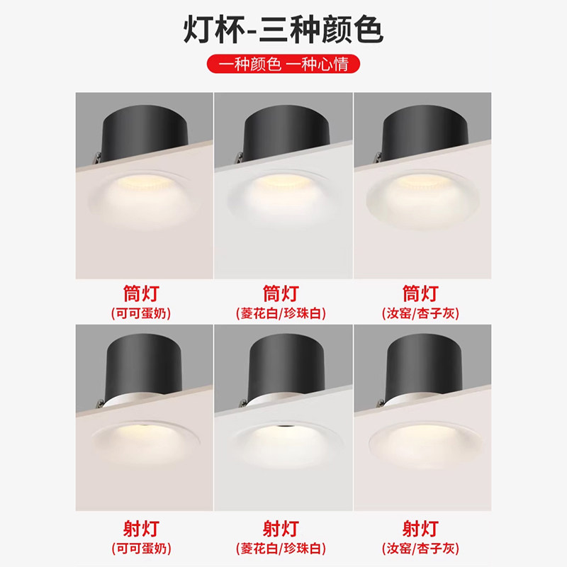 可可蛋奶乳胶漆弧面防眩筒灯奶油中古风无边框嵌入式射灯