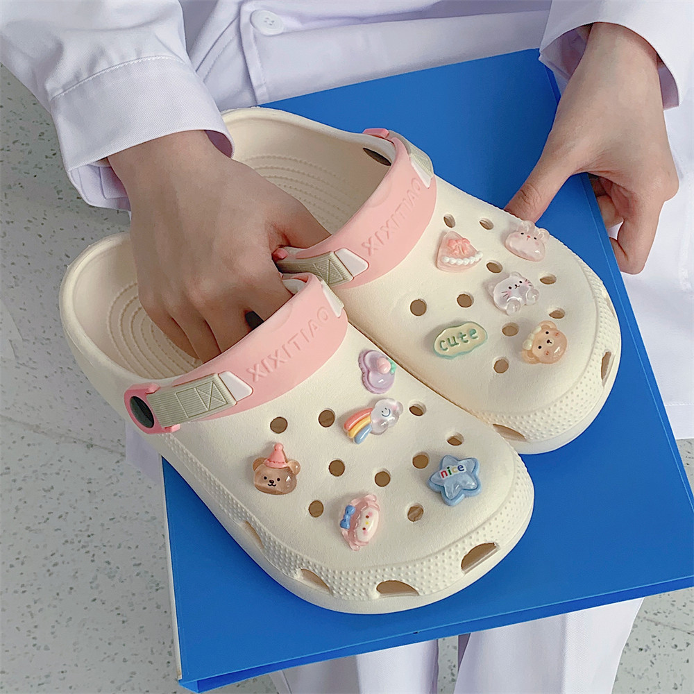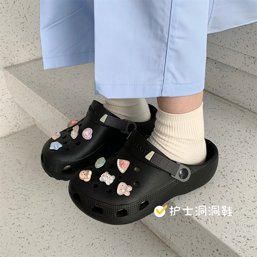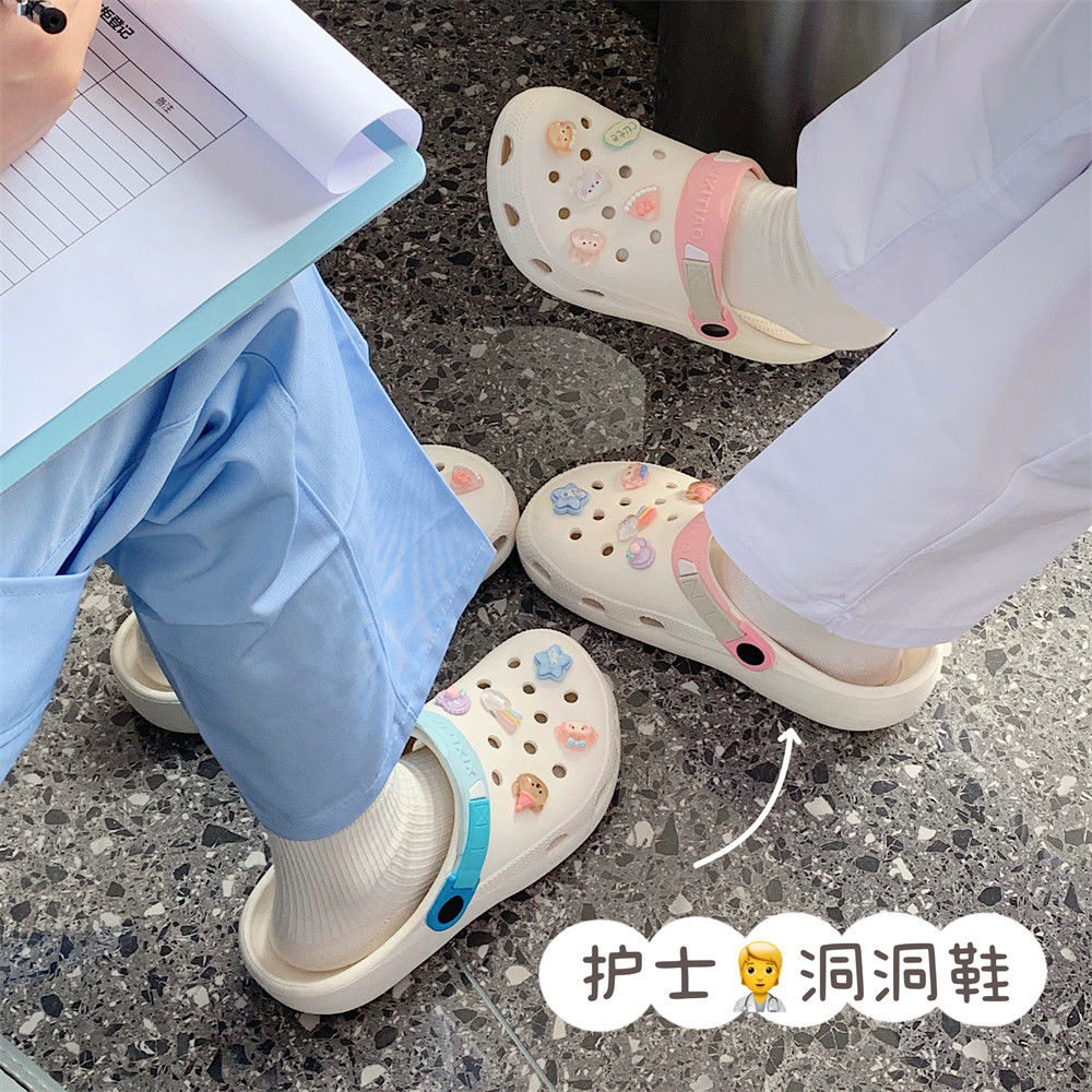 细细条 护士洞洞鞋男女可爱卡通eva情侣户外休闲防滑两穿凉拖鞋夏