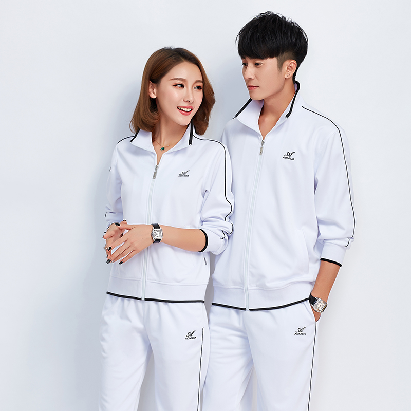白色运动套装男休闲服春秋女情侣装上衣长袖广场舞老人跑步健身夏