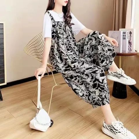 胖mm大码洋气背带裤女夏薄款宽松裙裤遮肉显瘦减龄阔腿连体长裤子