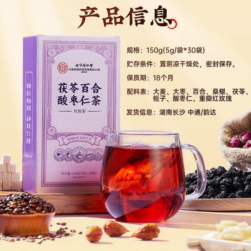 酸枣仁百合茯苓茶助膏汤粉眠多梦睡眠质量差养生茶正品官方旗舰店