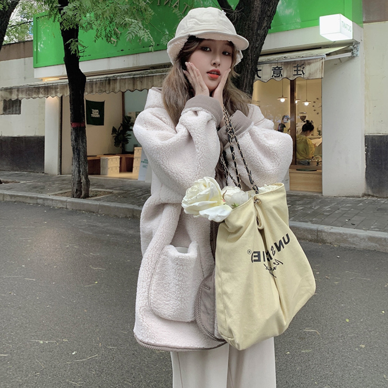 大码女装2025冬季新款胖mm韩版宽松显瘦连帽加厚仿羊羔毛棉衣外套