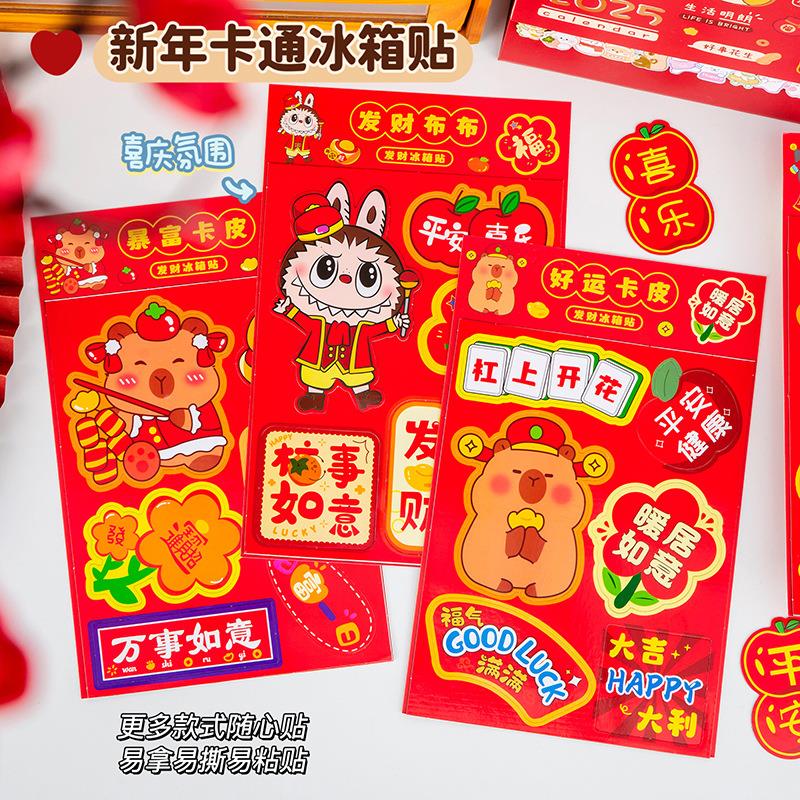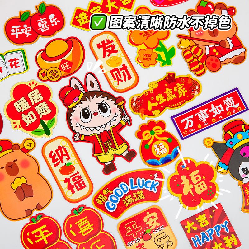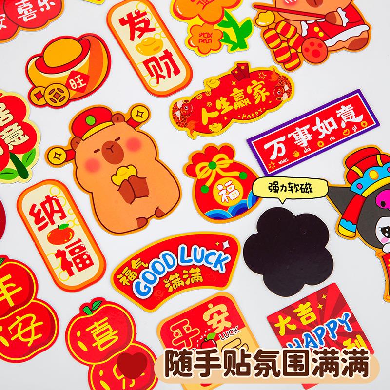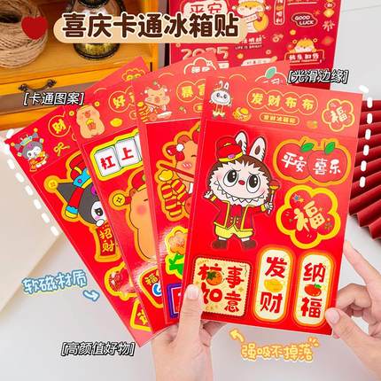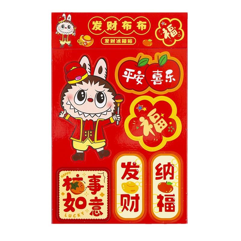 创意新年卡通卡皮磁性春联冰箱贴创意卡通拉布布喜庆装饰贴纸福贴
