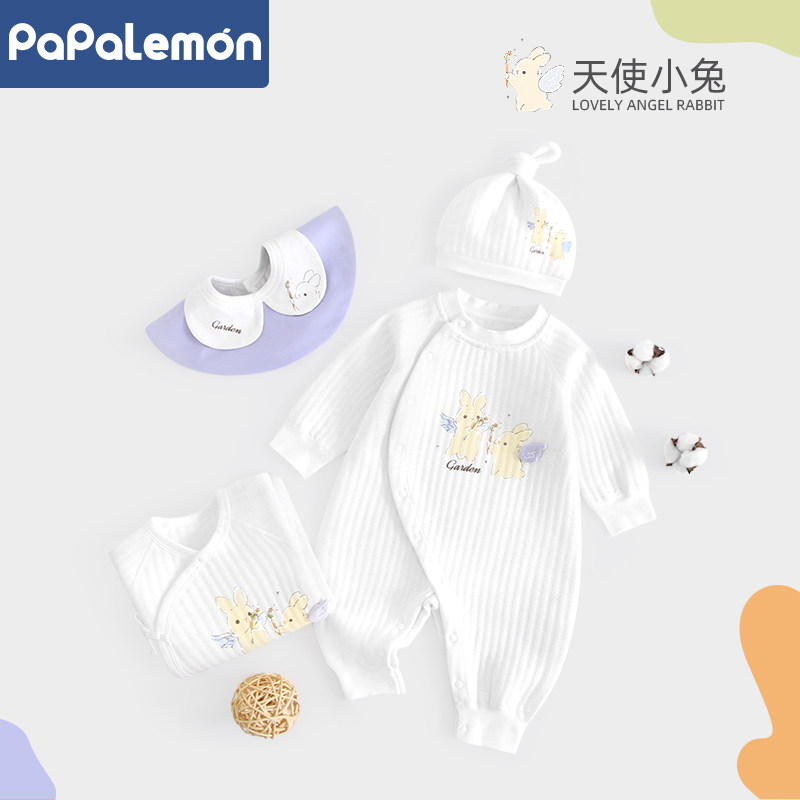 柠檬爬爬婴儿冬季夹丝偏开哈衣