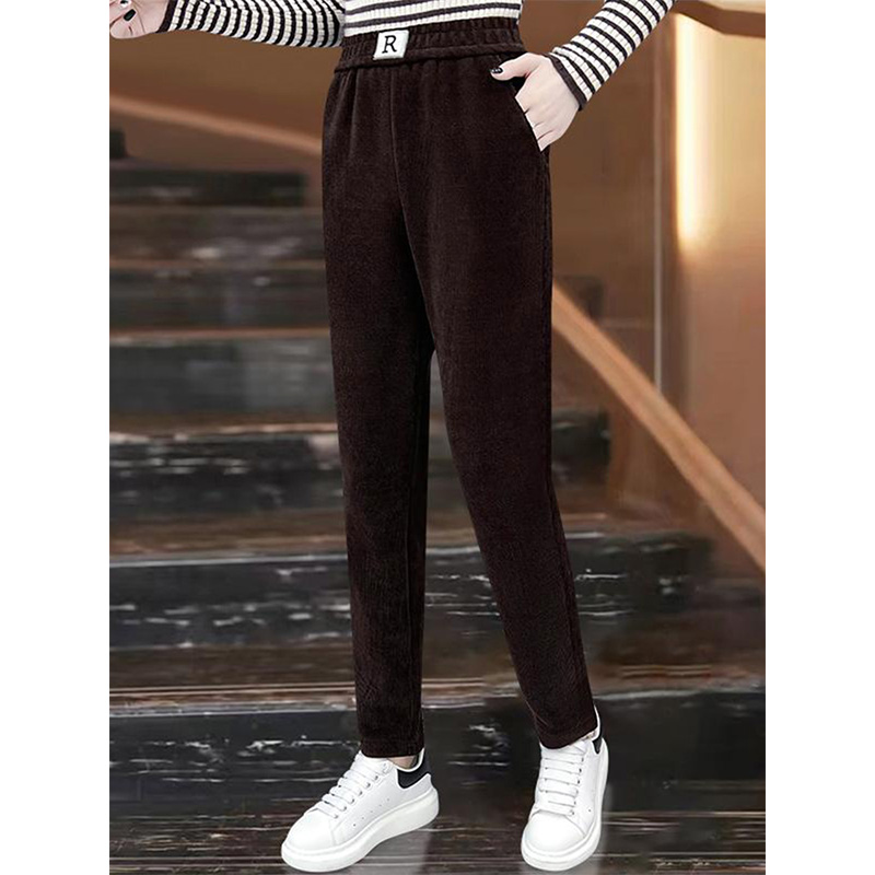 啄木鸟加绒哈伦裤秋装女新款高腰宽松显瘦灯芯绒休闲运动小脚卫裤