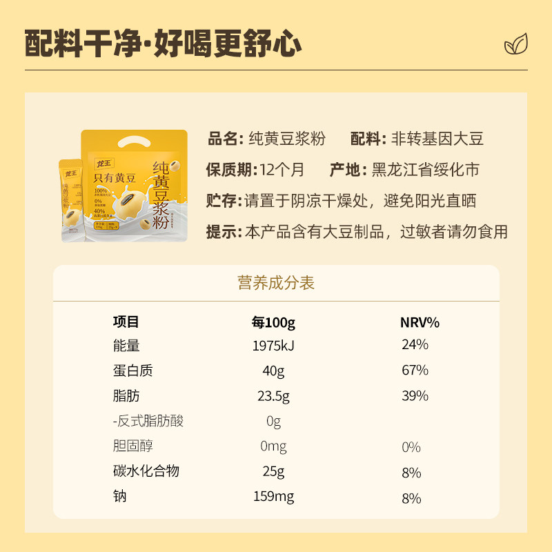 龙王高蛋白纯黄豆浆粉225g×3袋