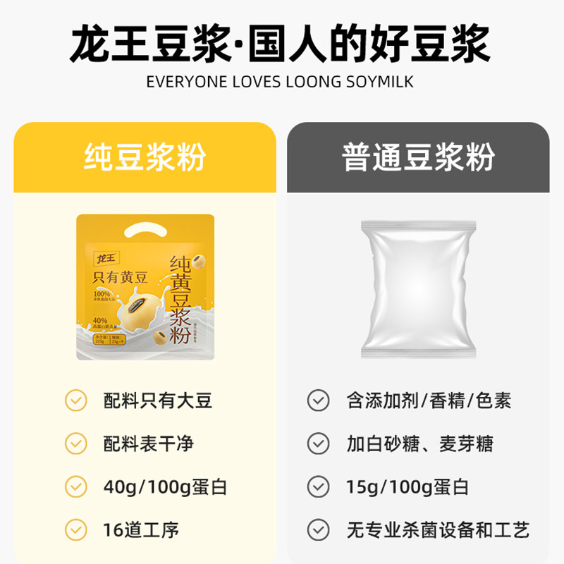 龙王金豆浆纯黄豆浆粉225g*3非转基因速溶高蛋白营养早餐健身冲饮