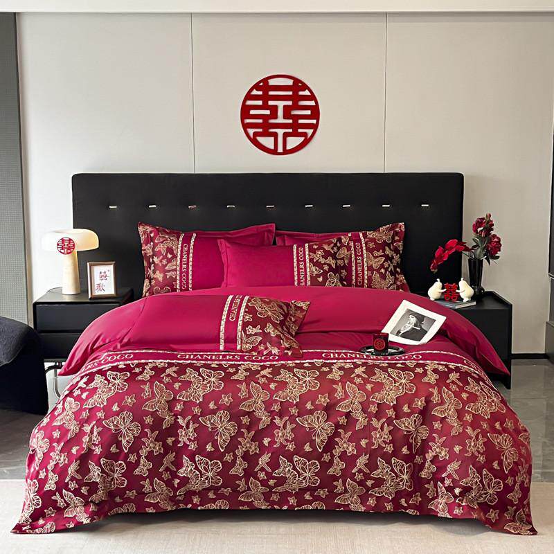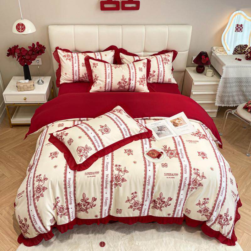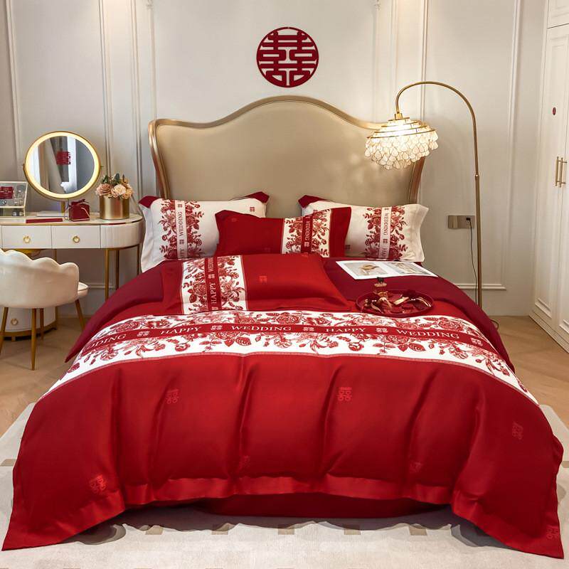 高档红色婚庆四件套床单被套喜被新婚结婚床笠款女方陪嫁床上用品