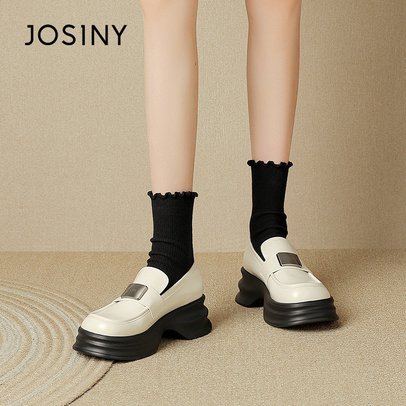 卓诗尼白色厚底乐福鞋女鞋2024新款夏设计感一脚蹬松糕通勤小皮鞋