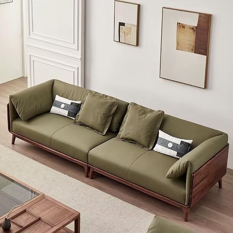 新中式白蜡木大象耳朵真皮沙发宋式美学黑胡桃木沙发禅意实木家具