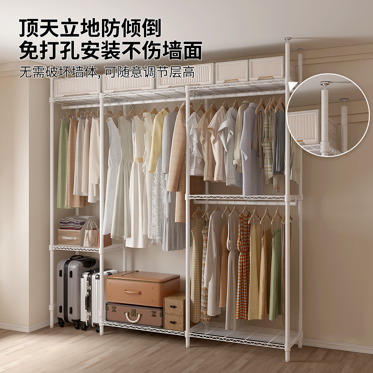 川井定制开放式金属衣柜卧室落地组合挂衣架敞开步入式衣帽间