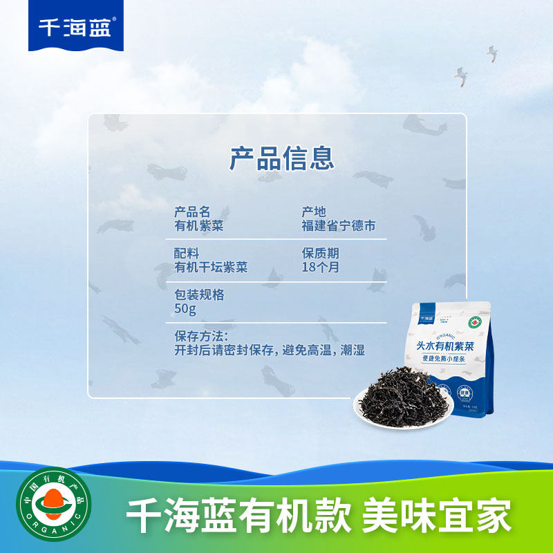 千海蓝有机头水紫菜碎干货免洗无沙纯福建霞浦宝宝儿童免撕干紫菜