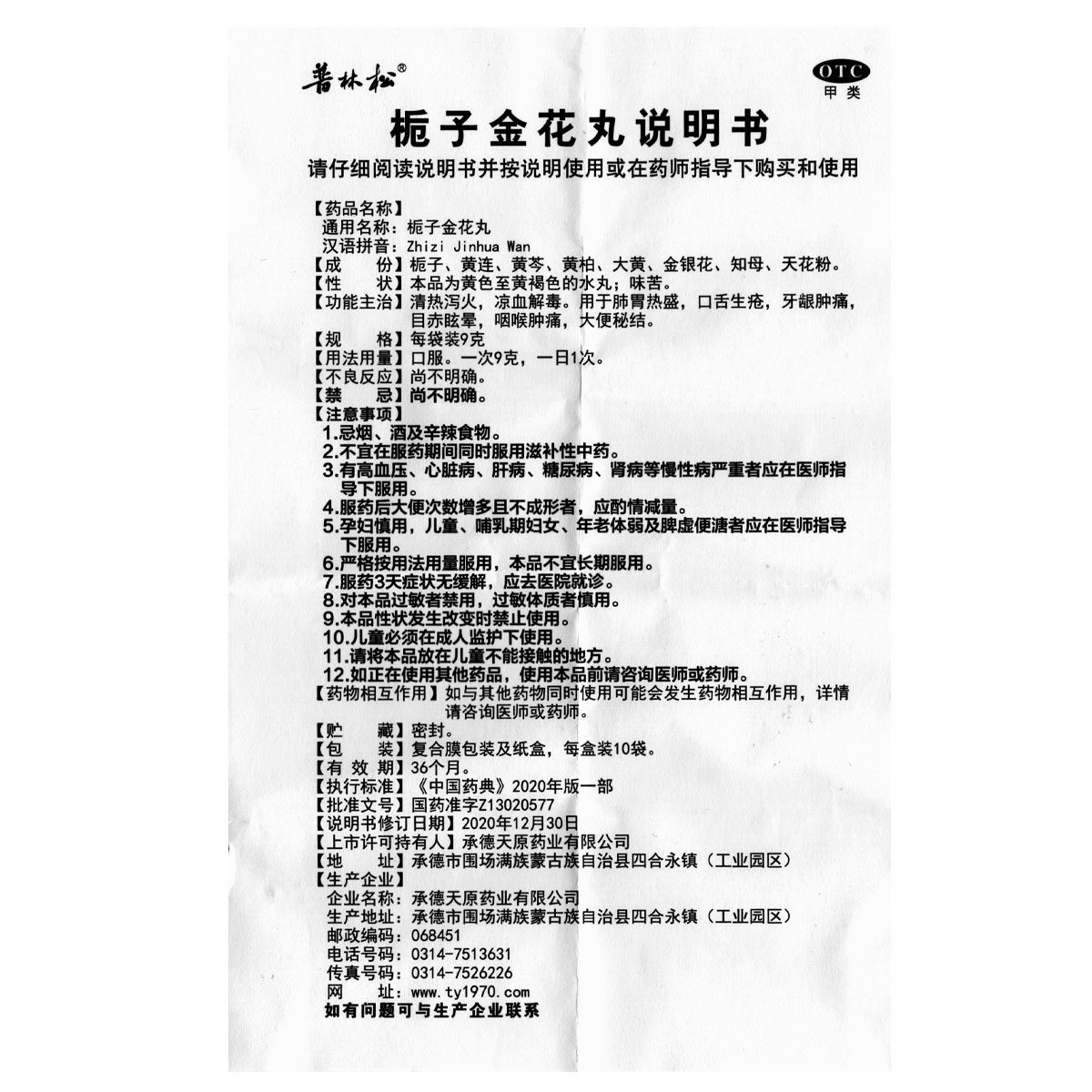 普林松 栀子金花丸 9g*10袋肺胃热盛口舌生疮牙龈肿痛咽喉肿痛GD