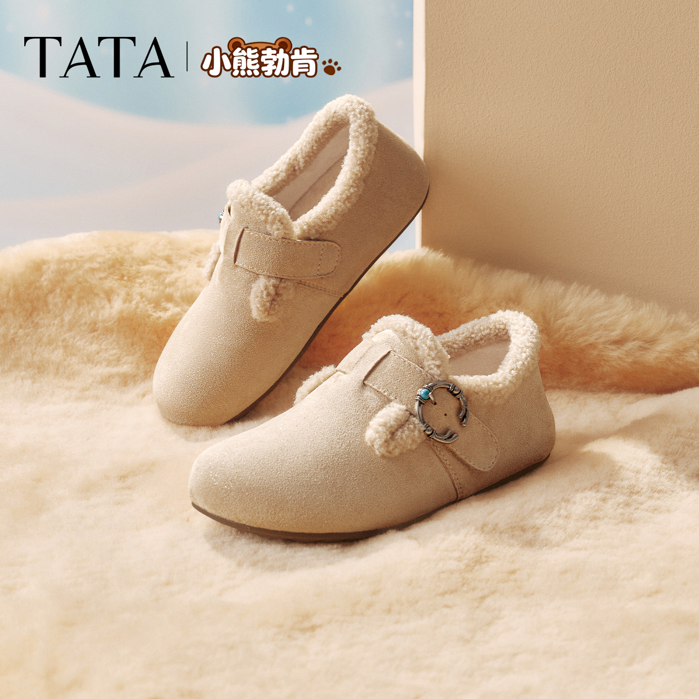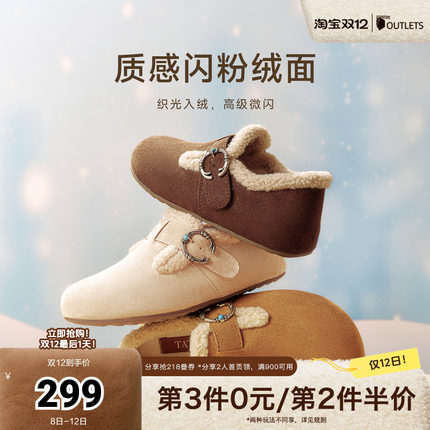 TATA他她复古加绒勃肯鞋女2025新款厚底包头拖鞋毛毛鞋CM802BH5