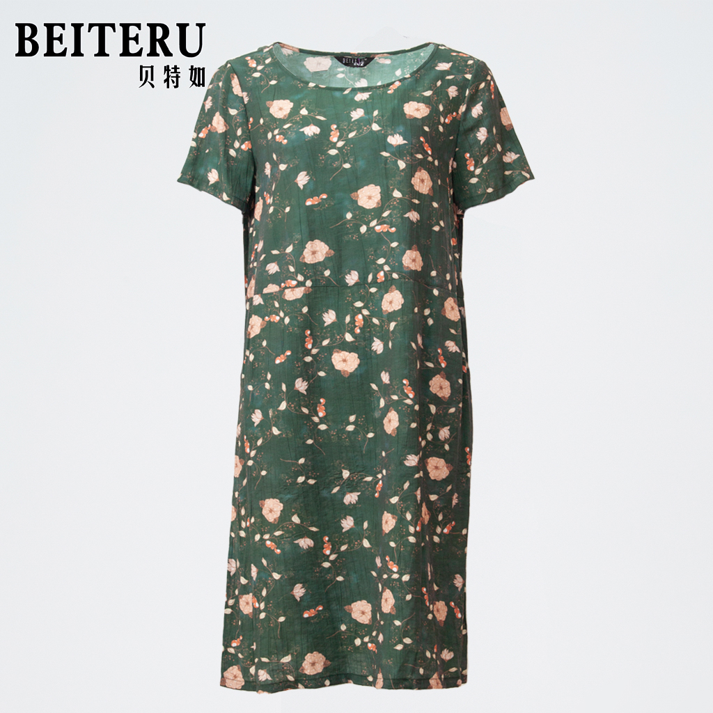 贝特如连衣裙中老年女士妈妈装休闲夏季新款洋气印花中长款裙EY