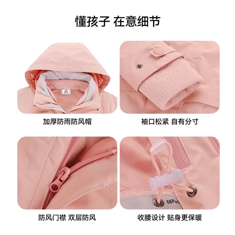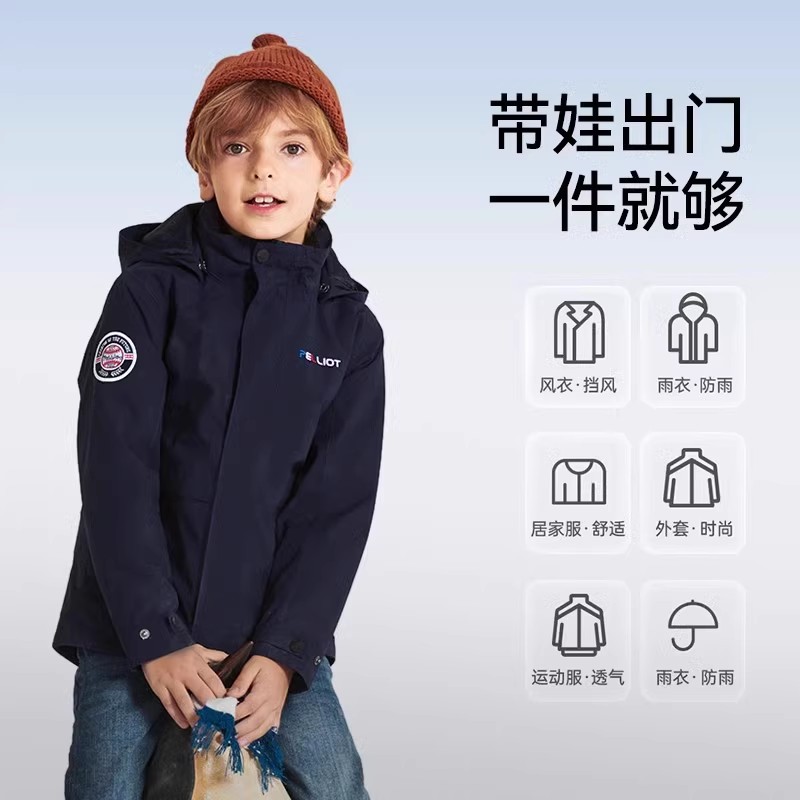 伯希和儿童冲锋衣男女童登山服三合一薄款两件套户外防风防雨外套