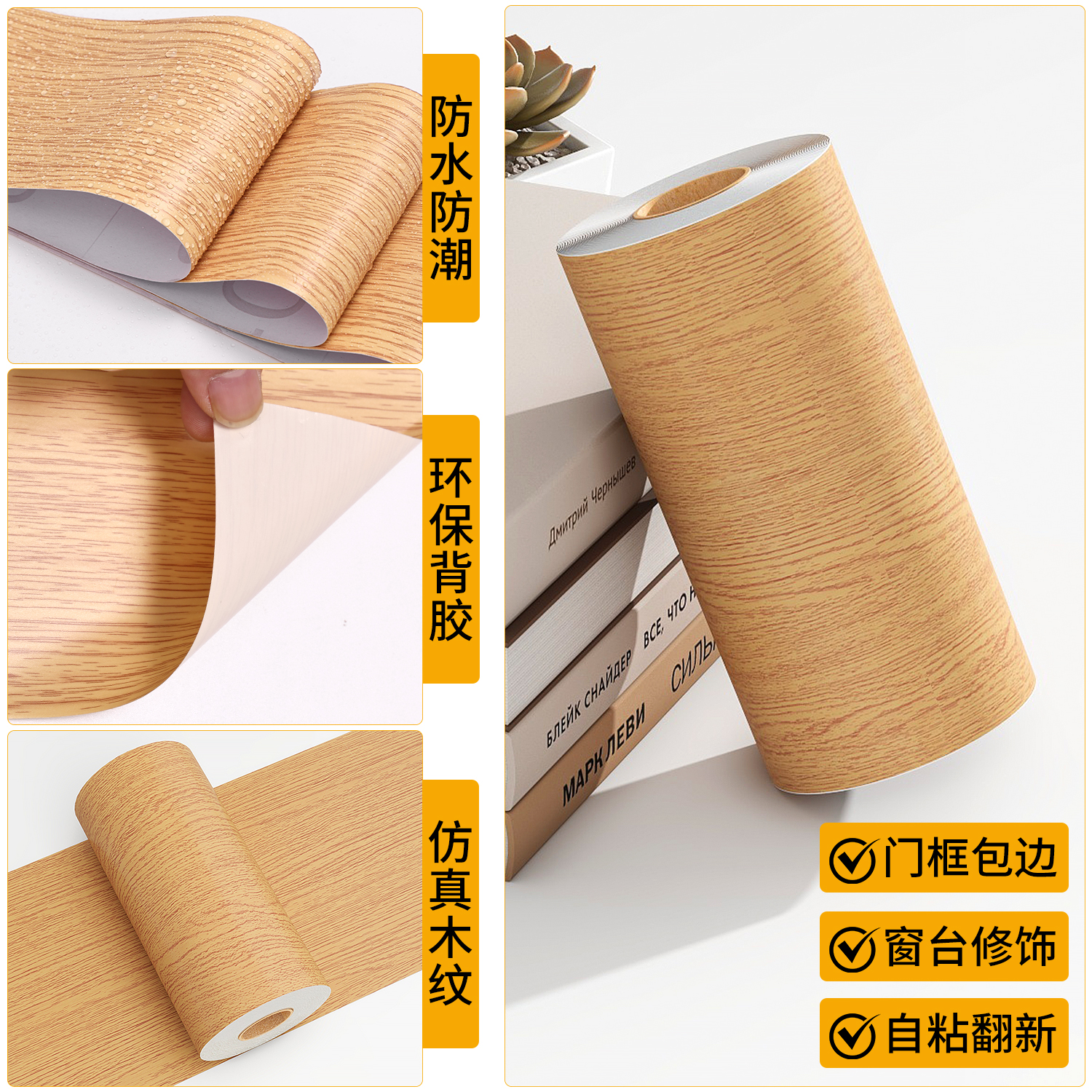 木纹贴纸自粘仿木地板遮丑贴墙板补洞木门破损修复衣柜子翻新贴皮