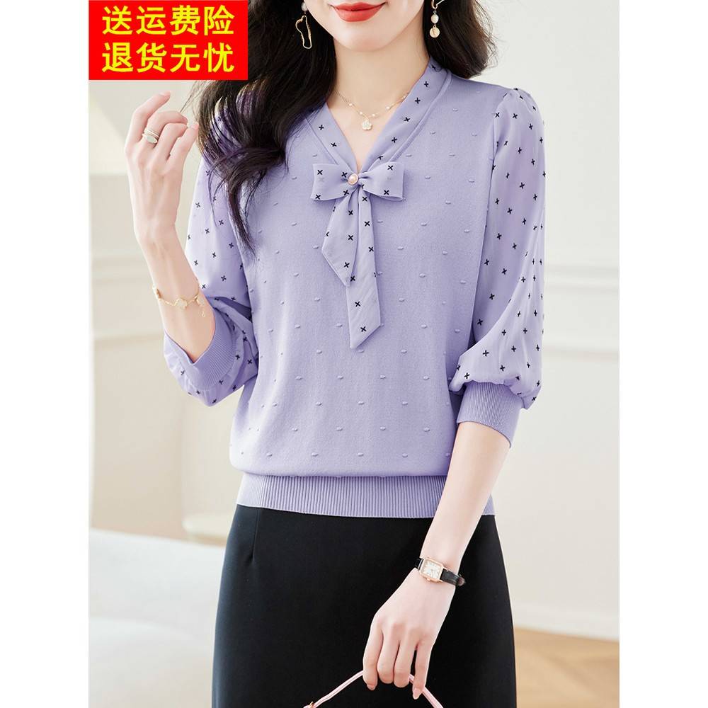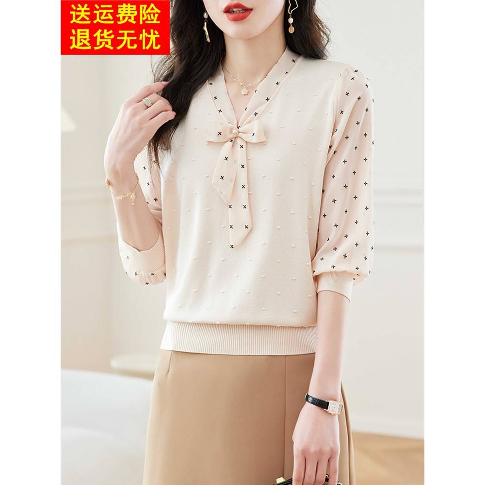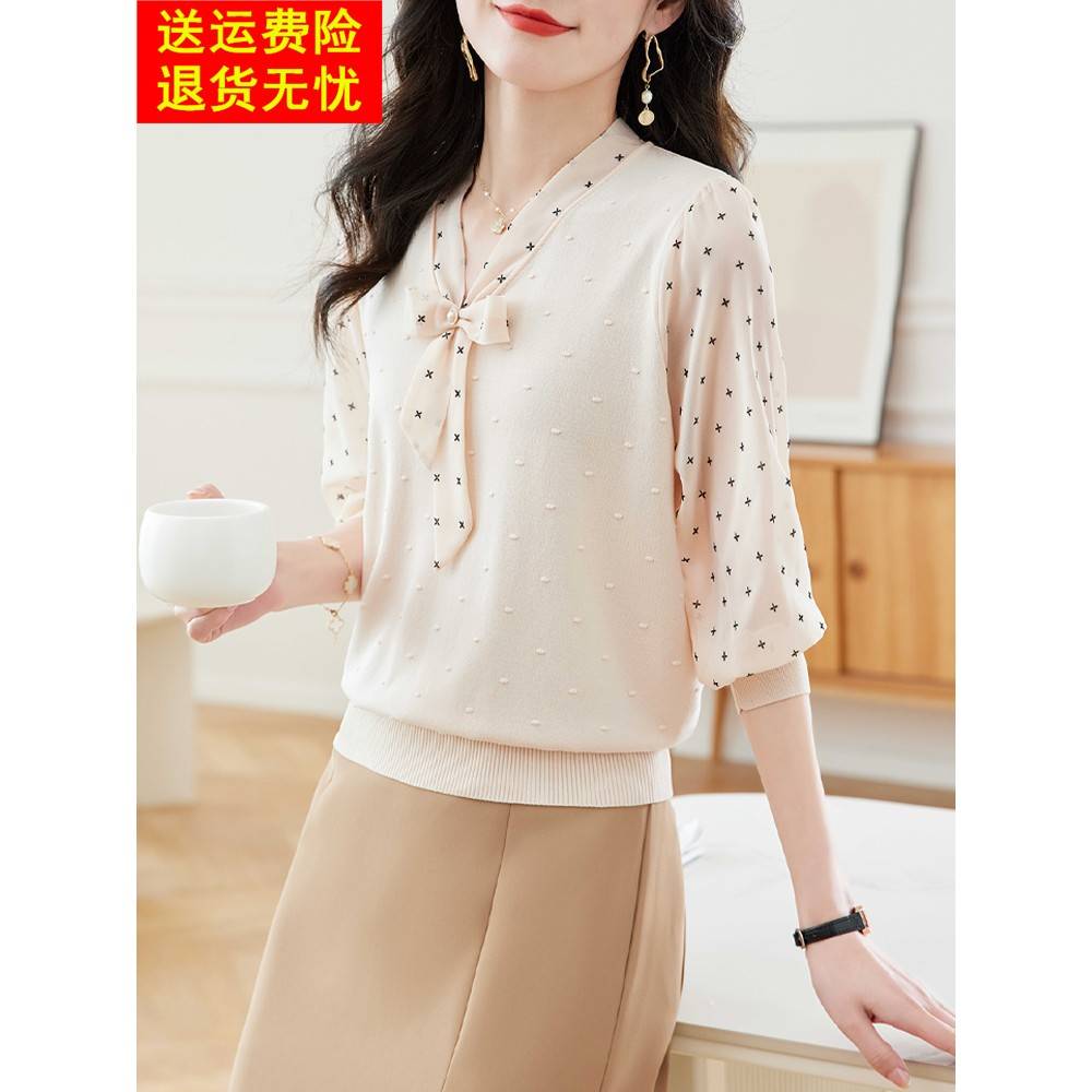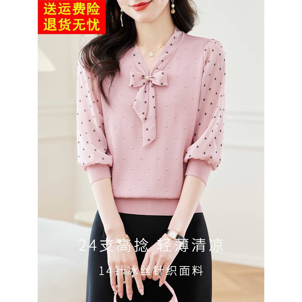 半袖t恤女秋季2025新款小衫洋气雪纺短袖冰丝上衣七分袖针织体恤