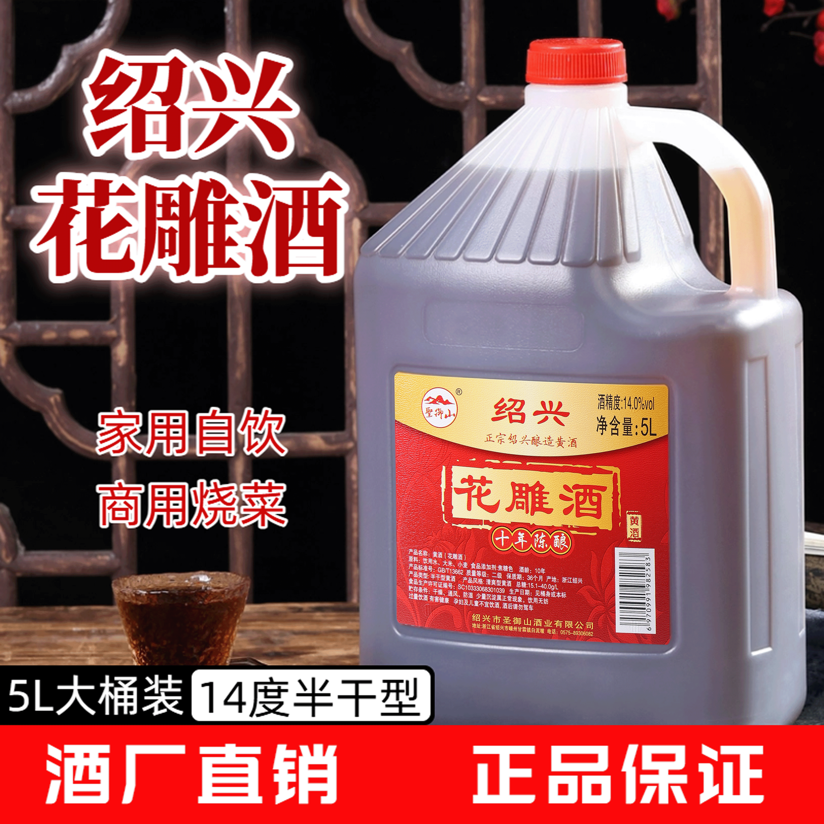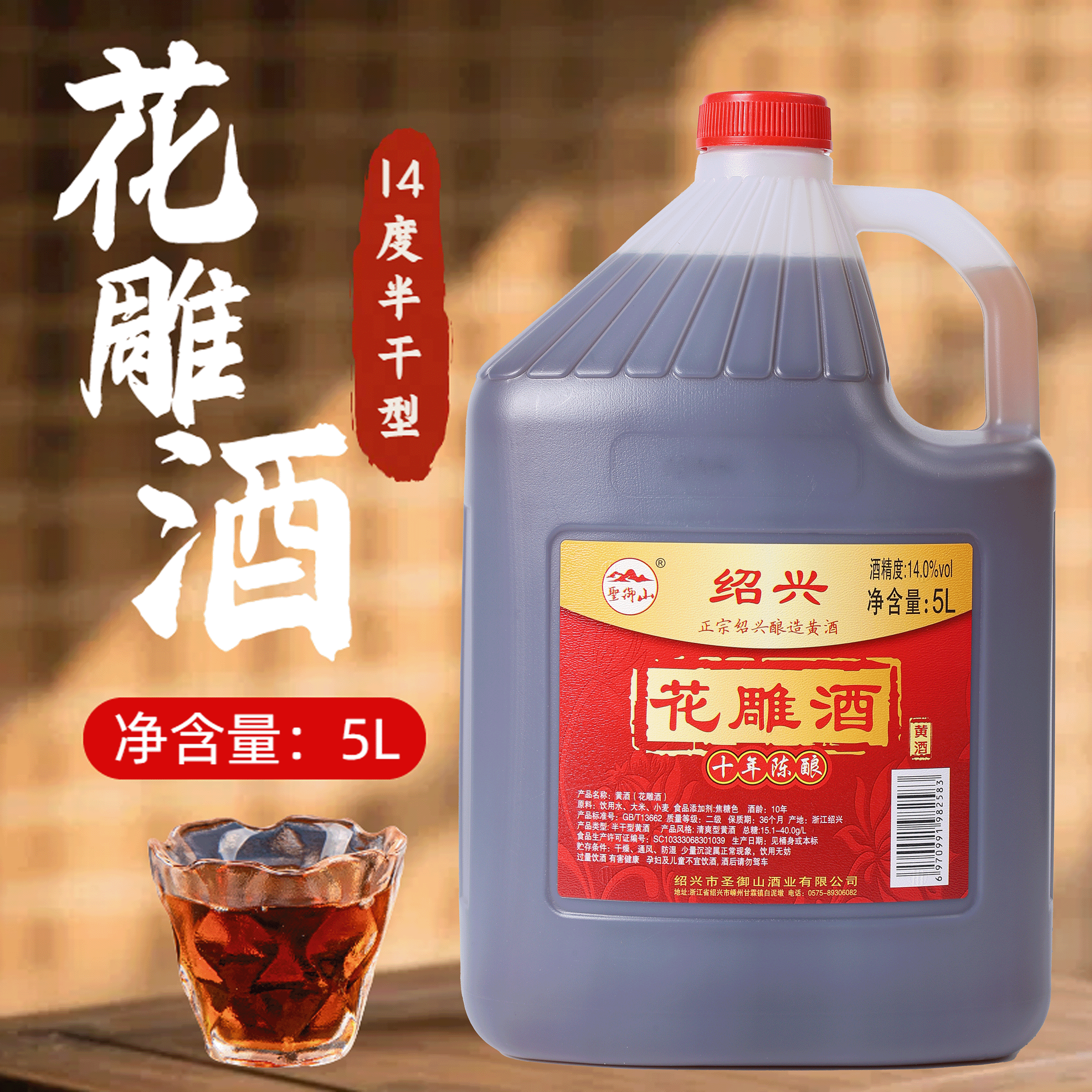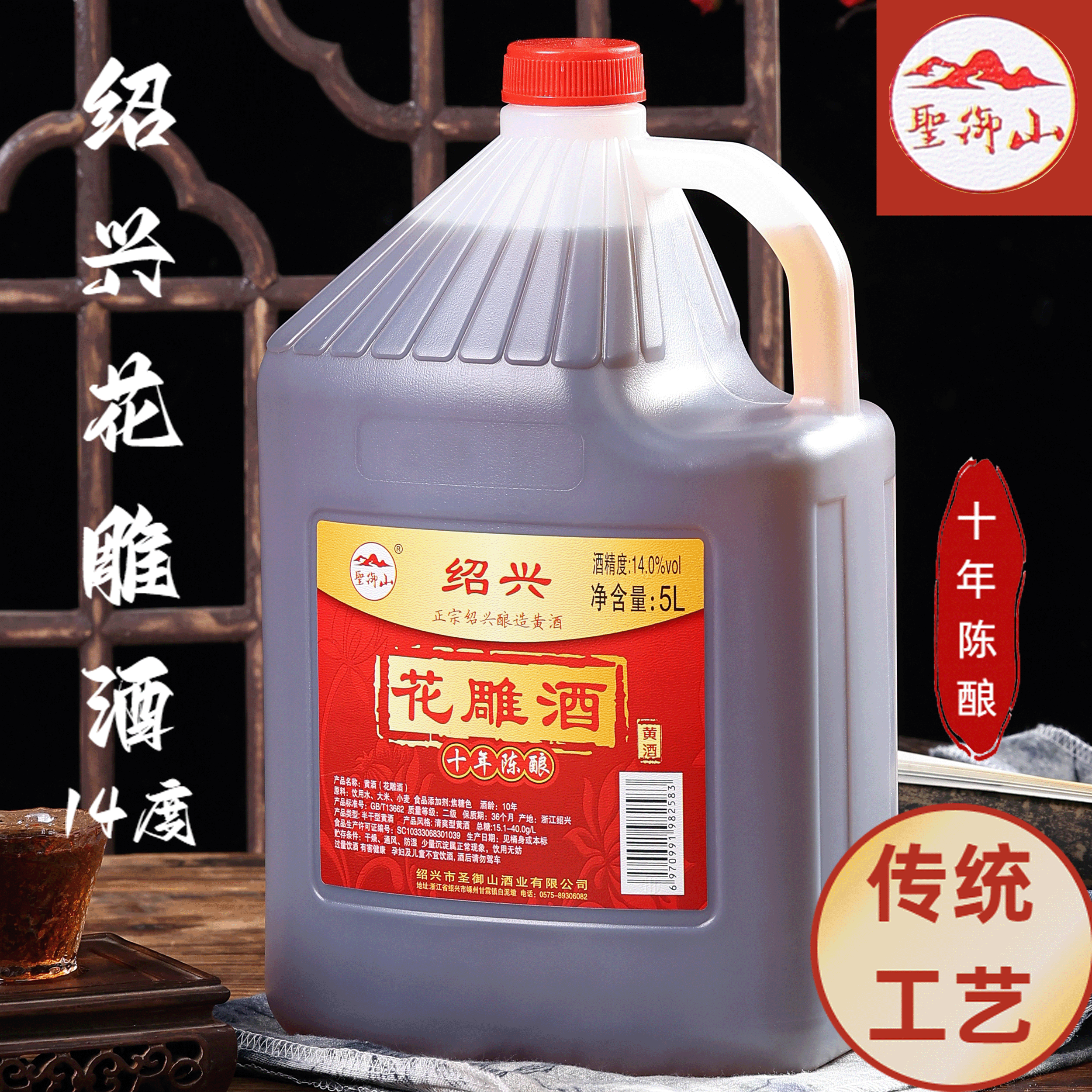 圣御山绍兴花雕酒十年陈酿10斤装