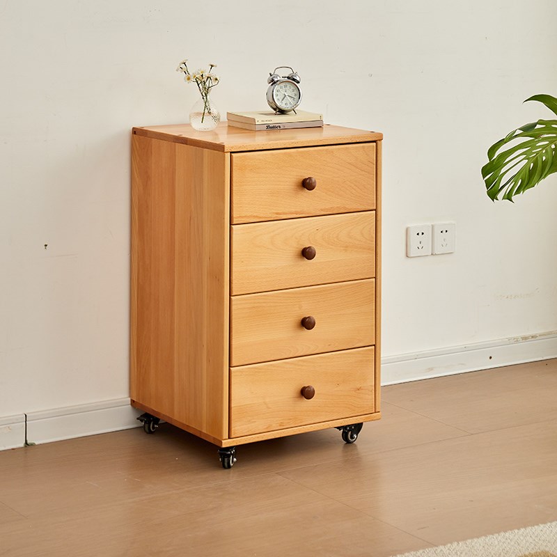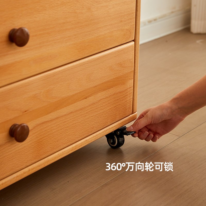 金多喜实木儿童斗柜原木带轮书柜家用卧室床头柜榉木收纳四抽屉柜