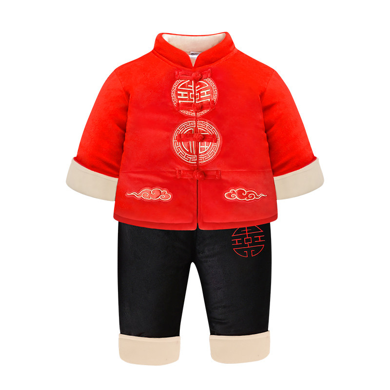 男宝宝婴儿一周岁礼服男童唐装抓周衣服春秋冬季男孩加厚冬装套装