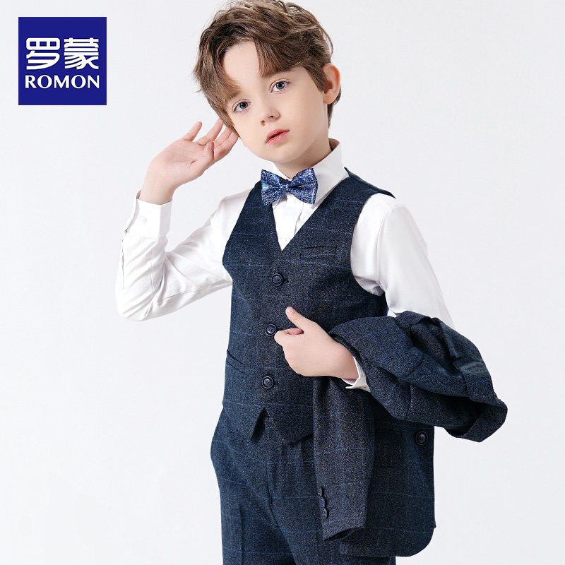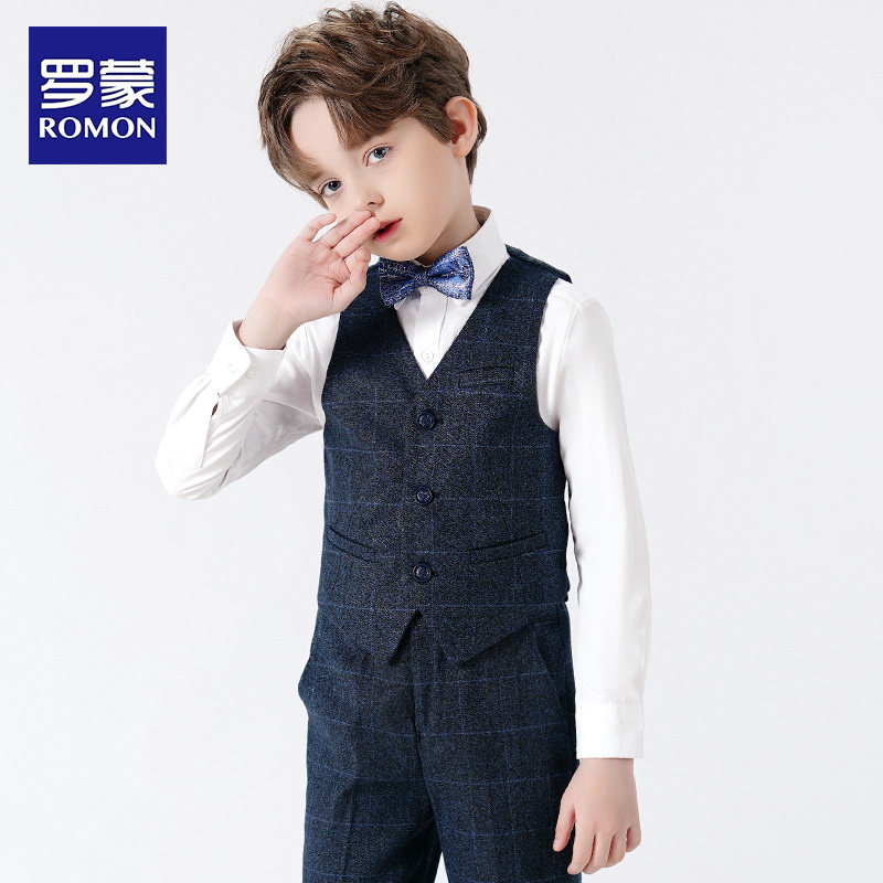 罗蒙花童男童礼服马甲套装中大童儿童西装男孩小西服主持人演出服