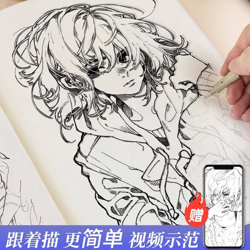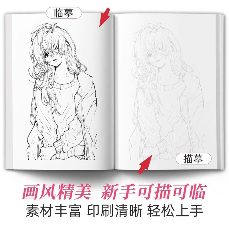 达人推荐漫画人物绘画二次元临摹手绘练习画册速写控笔填色动漫线稿描摹本入门自学零基础铅笔涂色爆款素描本