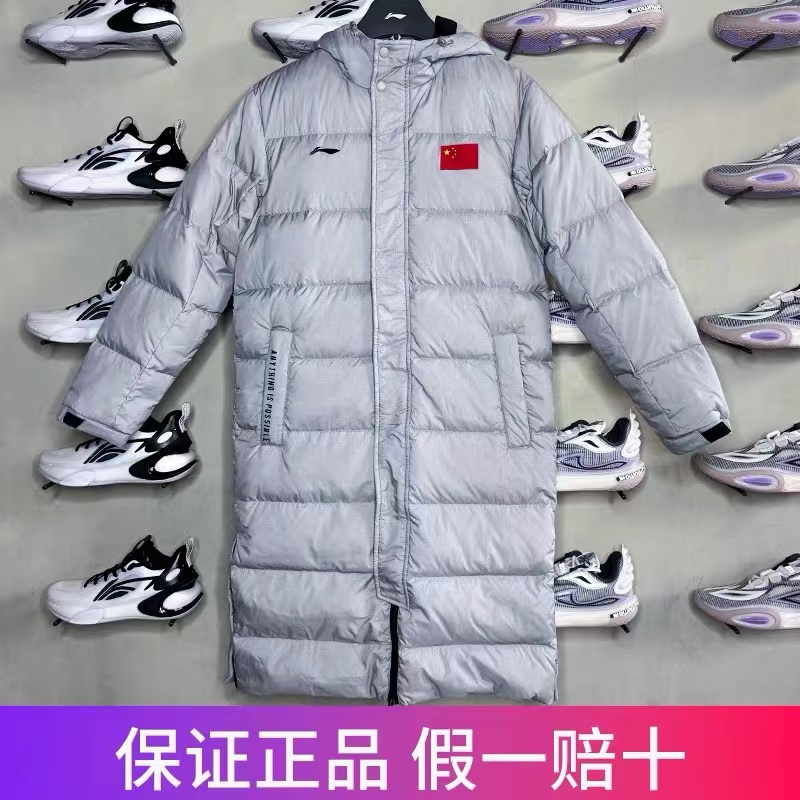 李宁男子中长款羽绒服2023冬季新品羽毛球系列鸭绒保暖AYMT123