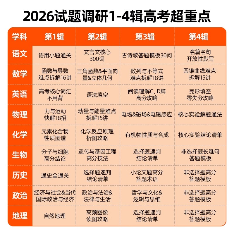2026天星教育试题调研第四辑语文数学英语物理化学生物政治历史地理试题调研第4辑高考超重点题型专项训练高三一轮总复习资料试卷