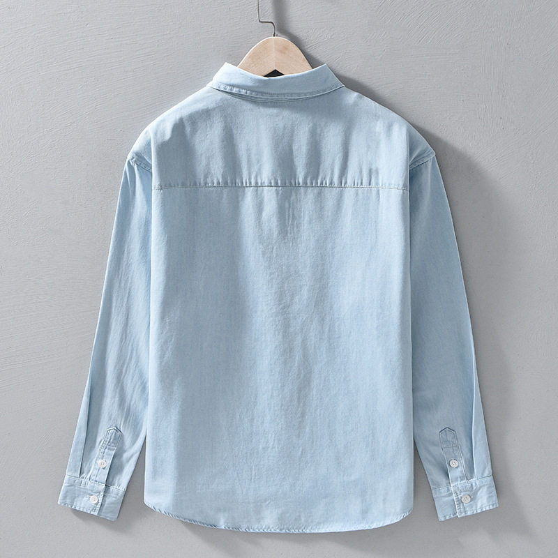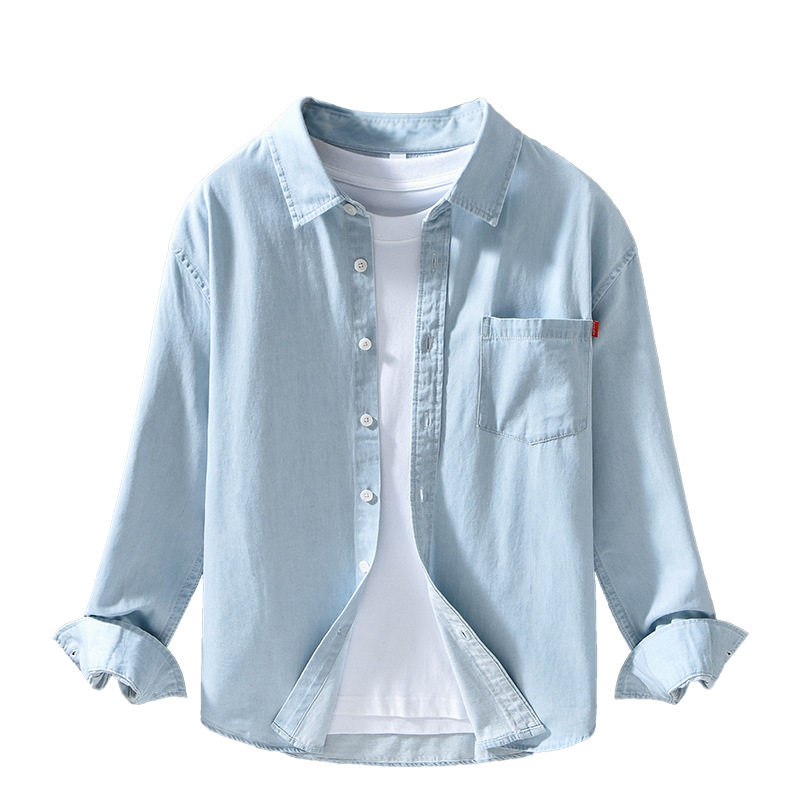 进口牛仔长袖衬衫男装外套帅气潮流百搭流行日系青年衬衣男