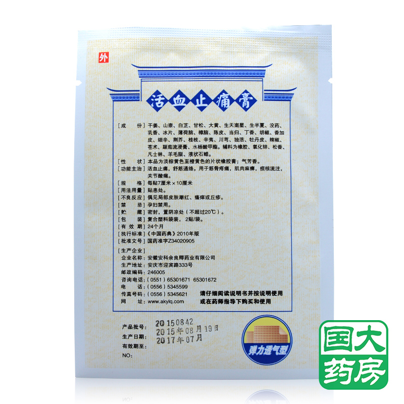 【余良卿号】活血止痛膏7cm*10cm*10贴/盒