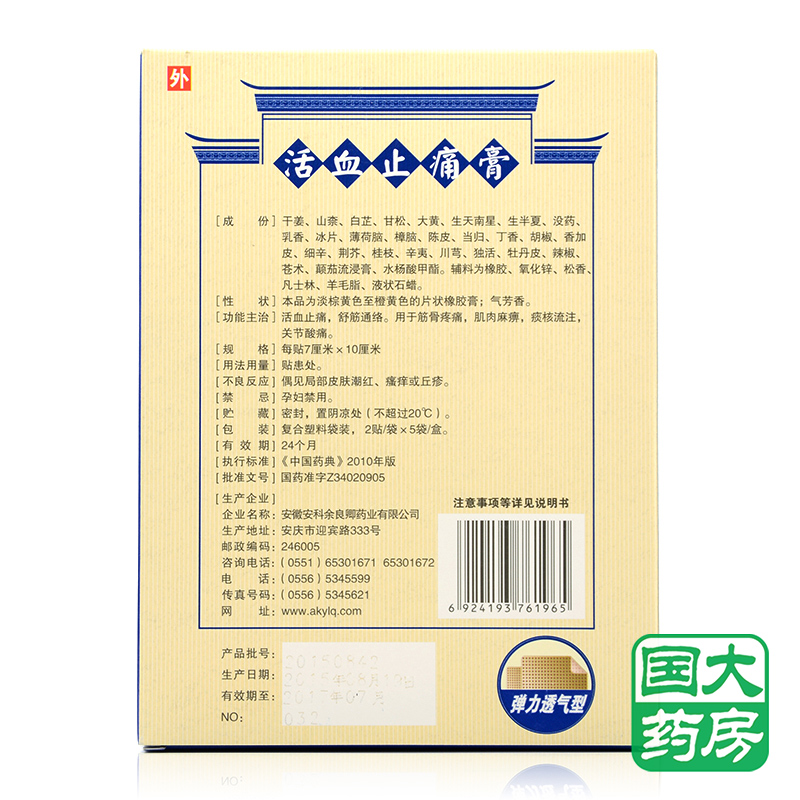 余良卿号活血止痛膏10贴余良卿止痛活血关节酸痛国大旗舰店正品