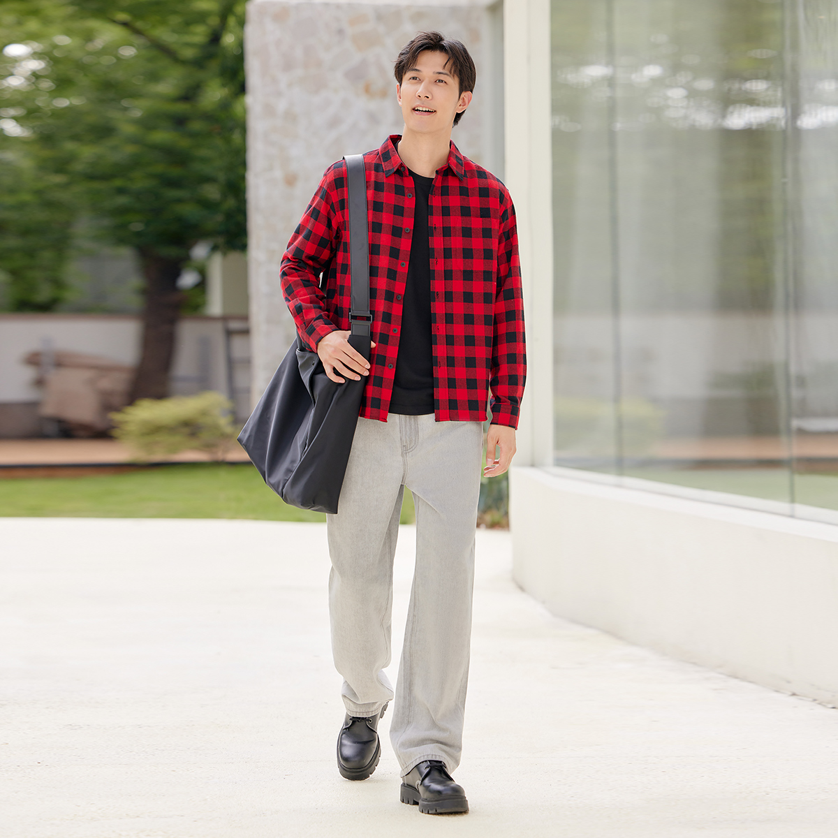 马恩MAXNEW男装2025秋季衬衫外套男纯棉法兰绒复古格子衫衬衣长袖