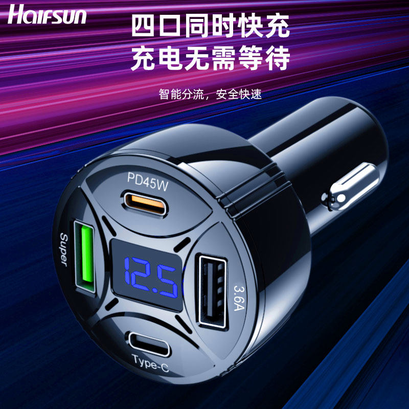 影巨人CQ-LC012车载充电器超级快充汽车用点烟器一拖四转换插头