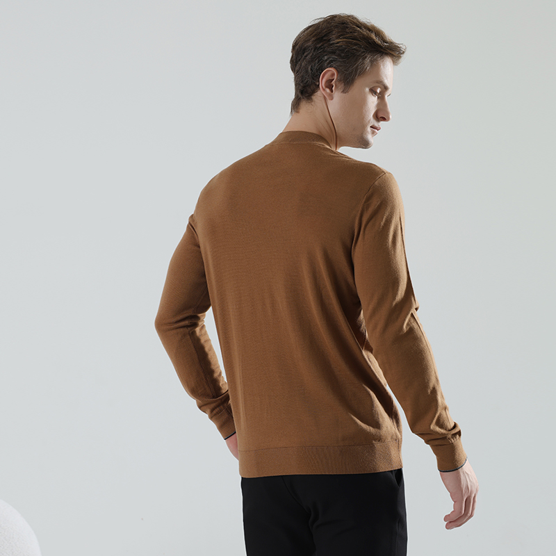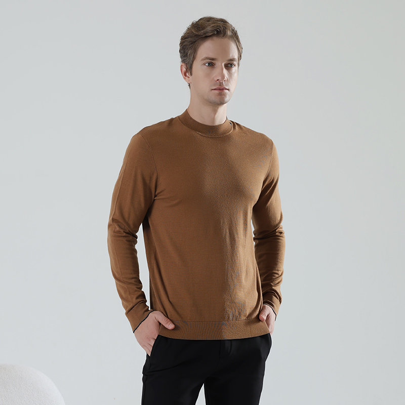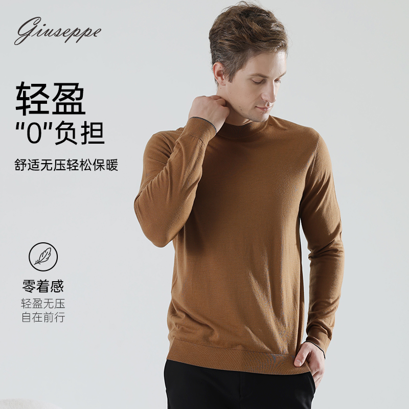 乔治白男士上衣秋冬新款绵羊毛针织衫圆领套头微弹直筒姜黄色毛衣