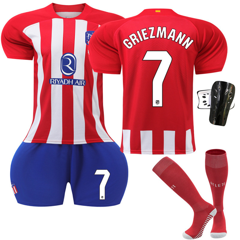 夏季2324新赛季马竞主场红色7号格里兹曼球衣短袖足球服女套装男