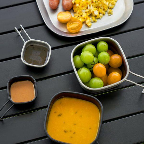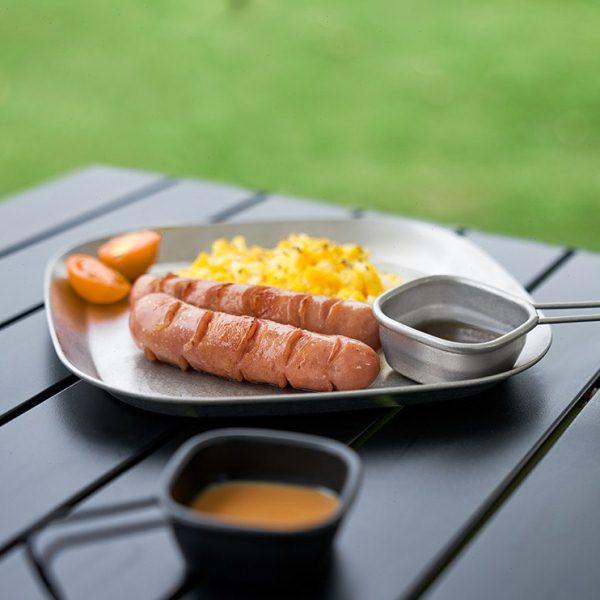 牧高笛不锈钢方形雪拉碗户外露营便携式野餐餐具可挂单人食餐碗