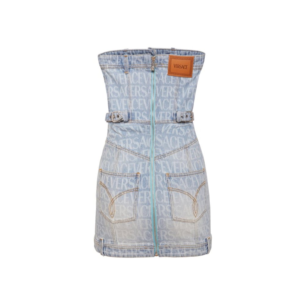 香港直邮Versace 徽标印花牛仔迷你连衣裙 78I-A86009