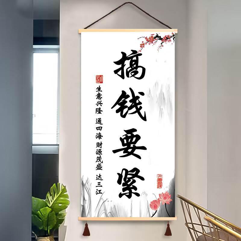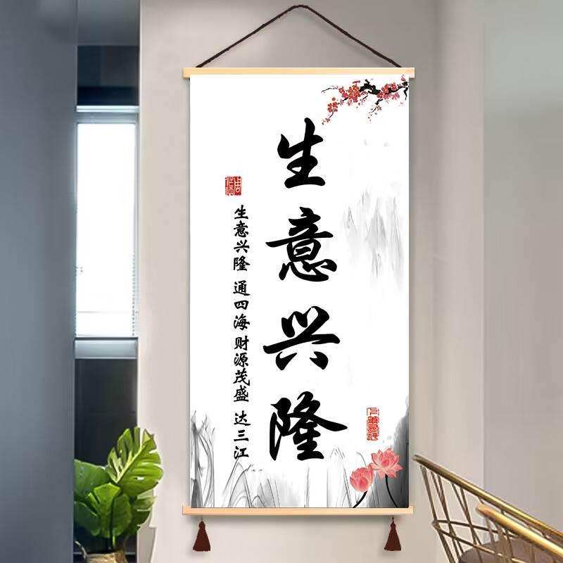 生意兴隆挂画笑迎天下客挂轴饭店办公室玄关书房装饰画遮挡挂图