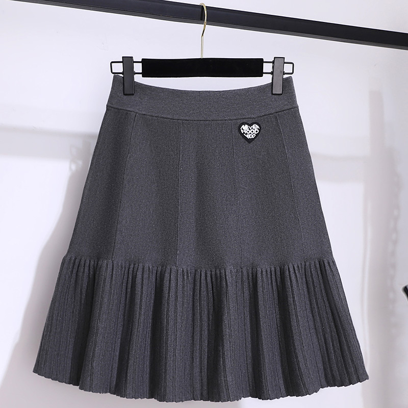 羊毛针织半身裙女秋冬短裙冬天灰色百褶半裙2025新款配卫衣穿搭