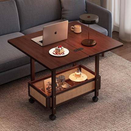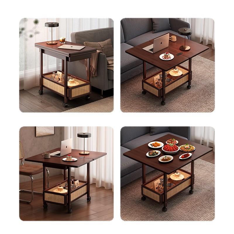 移动茶几可折叠桌子小户型客厅家用沙发阳台餐桌两用实木中古推车